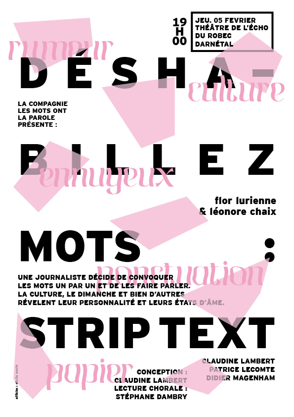 Déshabillez-mots Galerie Déshabillez-mots Février, Lecture Déshabillez-mots2025-11-14T12:01:37+02:00By Echo du Robec|Categories: Février, Lecture|Jeudi 5 février à 19h00 Conception : Claudine LambertRead MoreCommentaires fermés sur Déshabillez-mots